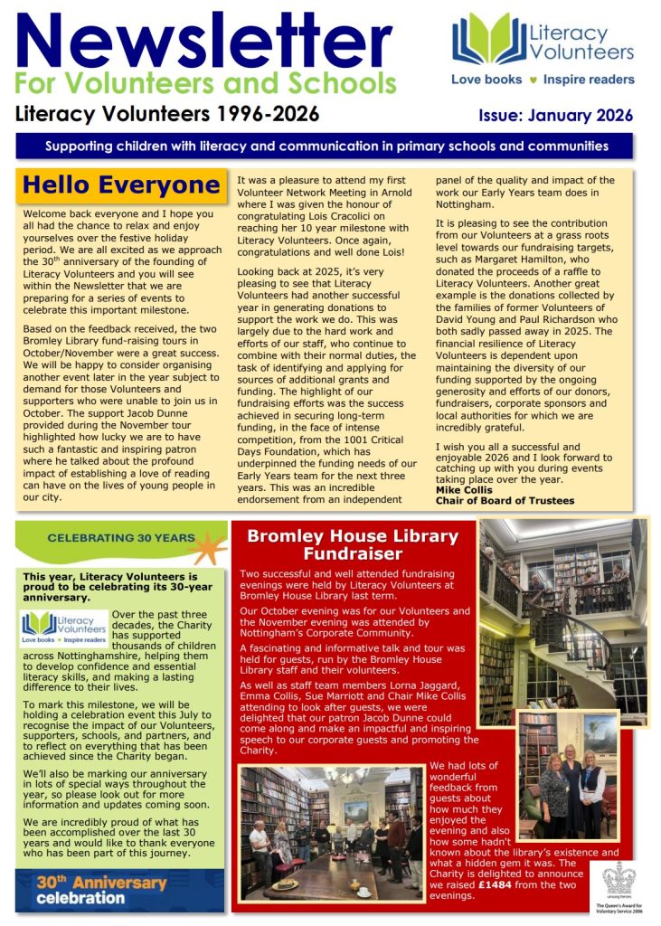 Our Literacy Volunteers Newsletter containing updates and our latest Charity news is published every school term. Have a look and see what we have been up to.